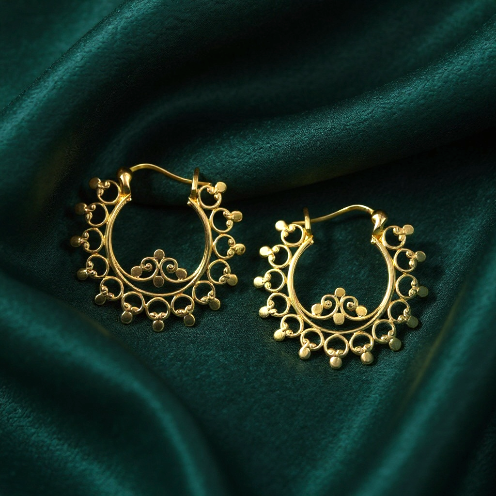 Exotische Filigrane 925 Sterling Silber Creolen – 18K Gold plattiert - OHR925-144