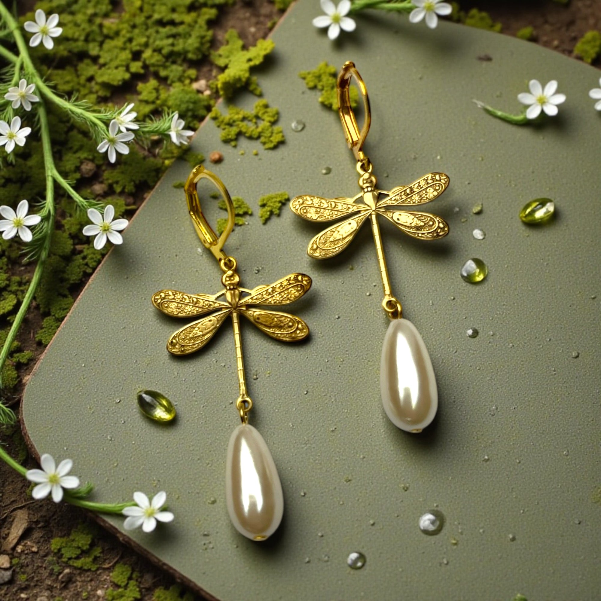 Mouches naturelles: chaînes et boucles d'oreilles avec de vraies fleurs, et 925 Sterling argentés chaînés